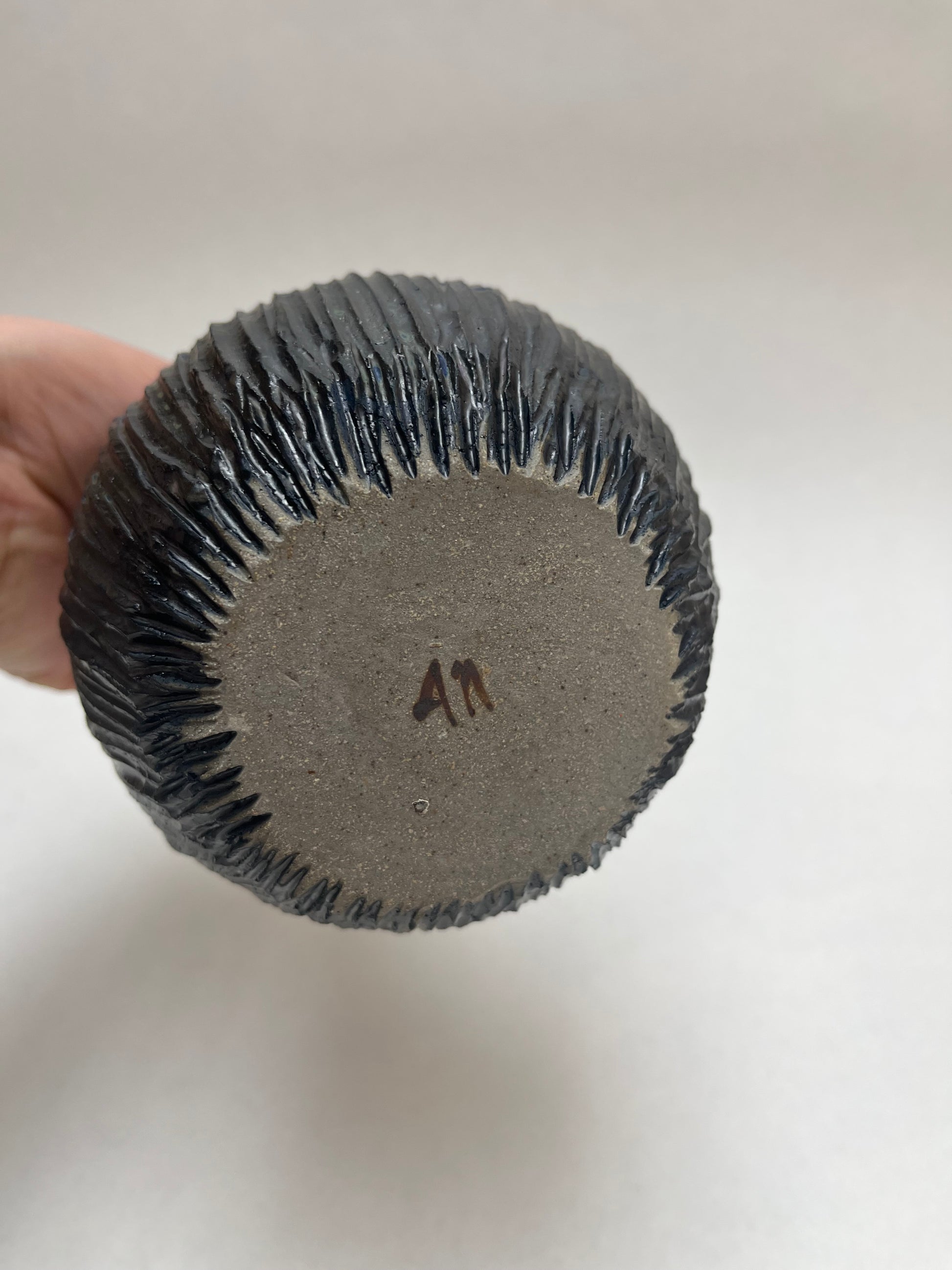 Black w/ Blue Undertones Textural Studio Pottery Vase Signed AP