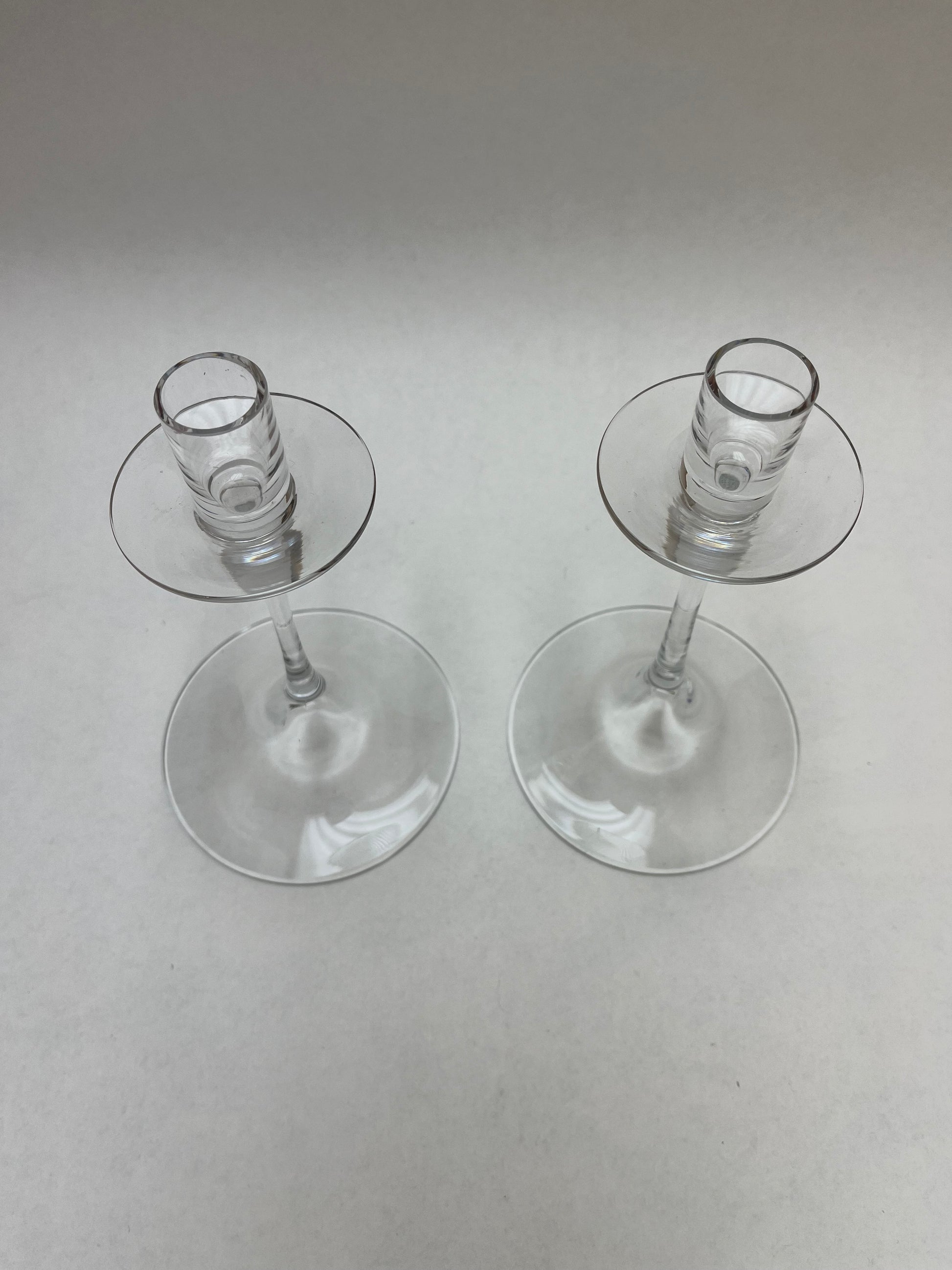 Pair Clear Crystal Orrefors Gabriel Candle Holders Sweden