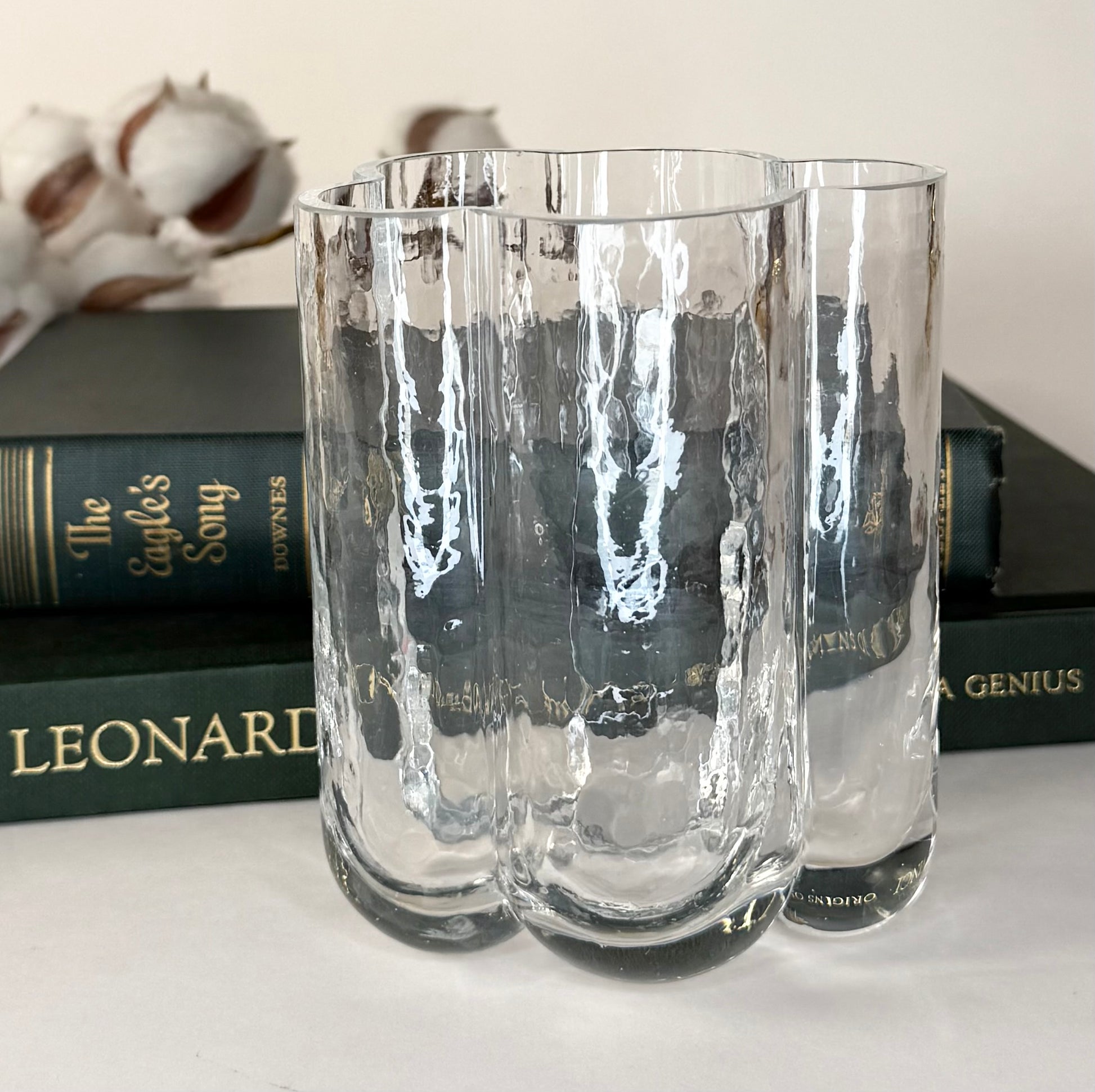 A striking sculptural vase by Swedish glass artist Rune Strand, crafted by SEA Glasbruk. This cloud glass piece showcases organic, flowing forms with soft, ethereal tones that capture light beautifully. Hand-signed by the artist, it's a distinctive statement piece that brings contemporary Scandinavian design sensibility to any interior. Perfect for collectors of fine art glass and those seeking a conversation-starting centerpiece. It is signed on the bottom (see image provided), free from any chips or cracks, and measures approximately 4 3/4" T x 3 3/4" W.