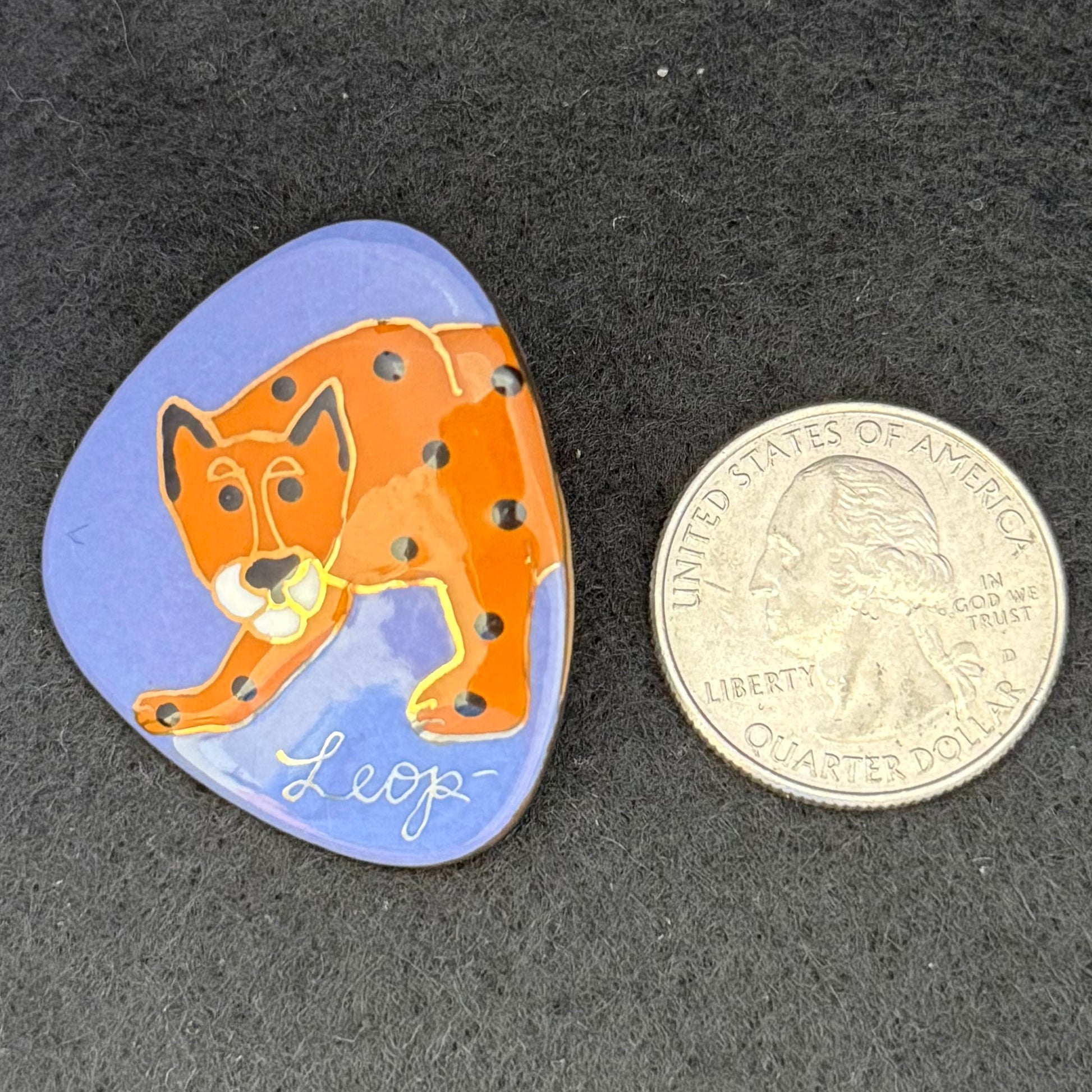 Fun pair of vintage ceramic painted Leopard post earrings. We have been unable to identify the maker of these earrings, but believe they are from the 1980s. They measure approximately 1 1/2" long by 1 1/4" wide.