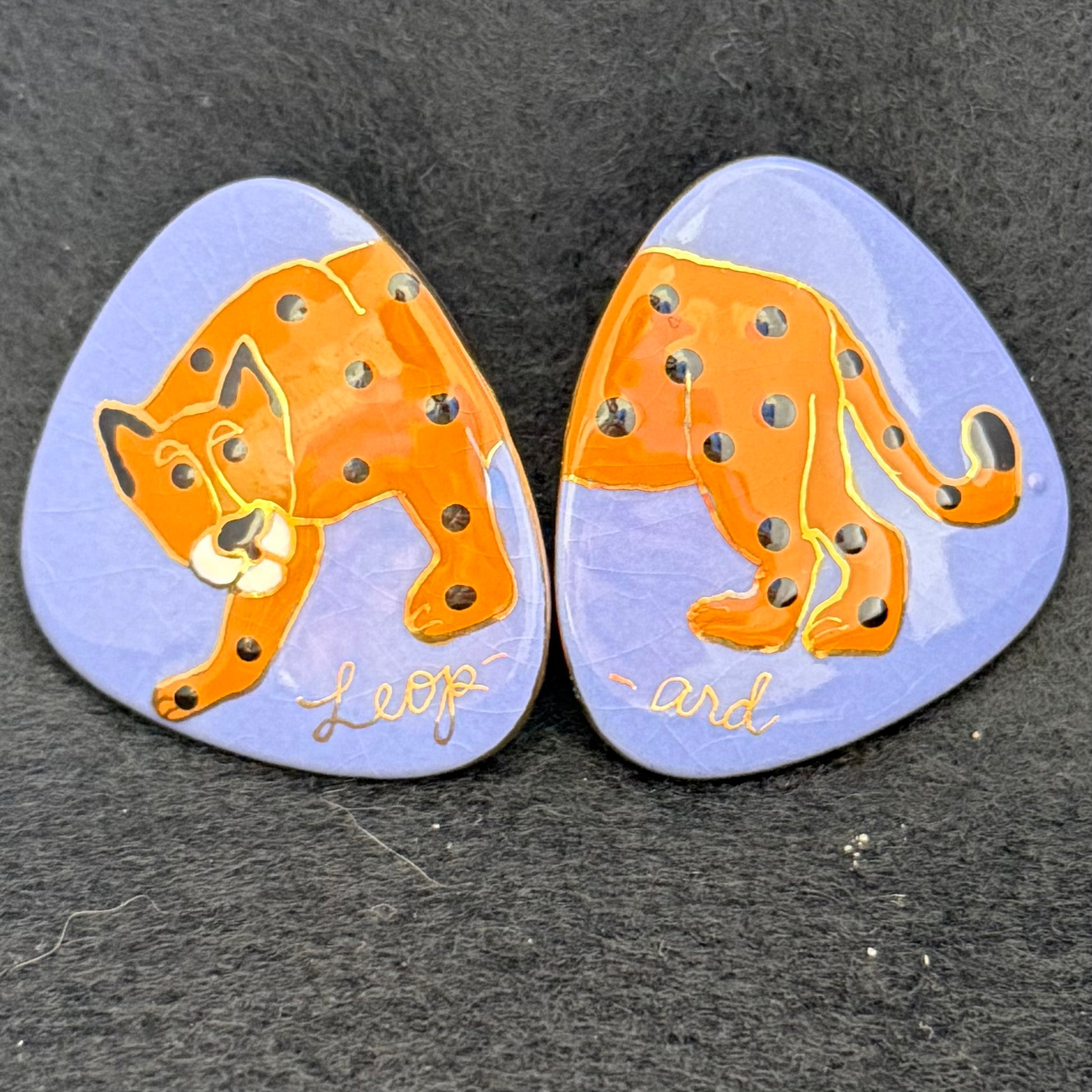 Vintage Painted Ceramic Leopard Post Pierced Earrings